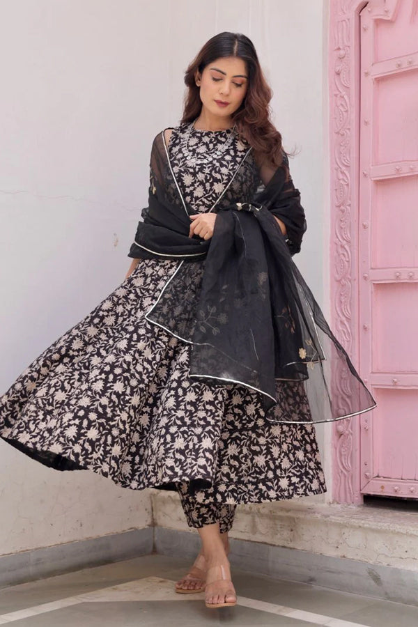 One of the standout styles in our collection is the Chanderi Anarkali Suit. Made from the luxurious Chanderi fabric, these suits have a soft, lightweight feel that exudes class and sophistication. The slight shine of Chanderi fabric adds a royal touch to any outfit, making it an ideal choice for wedding celebrations.