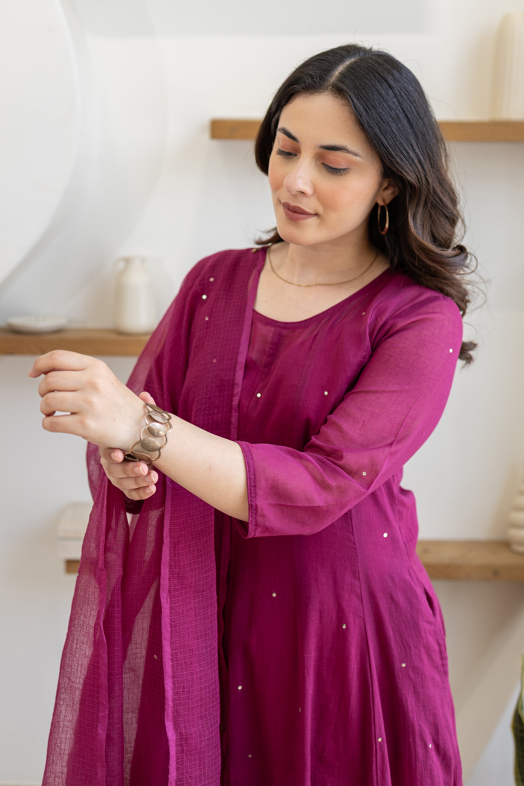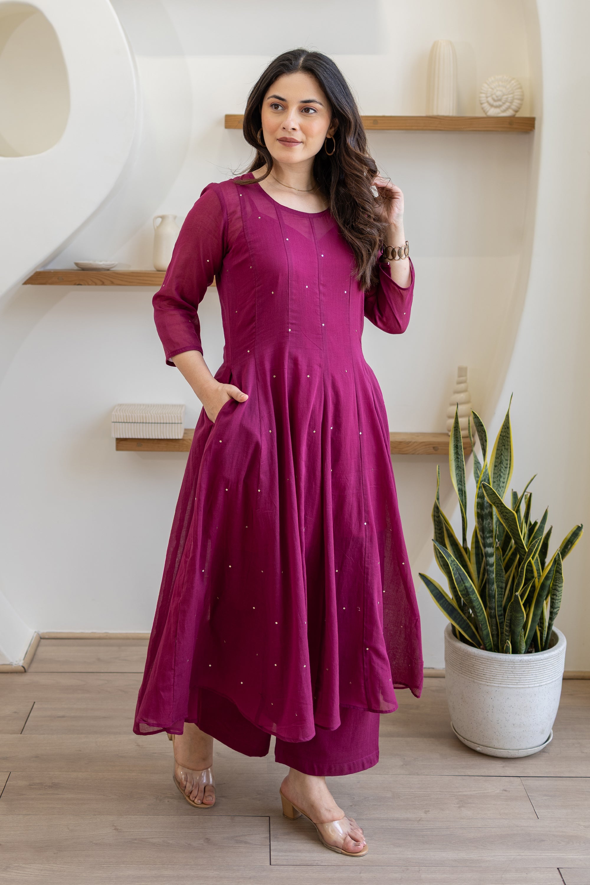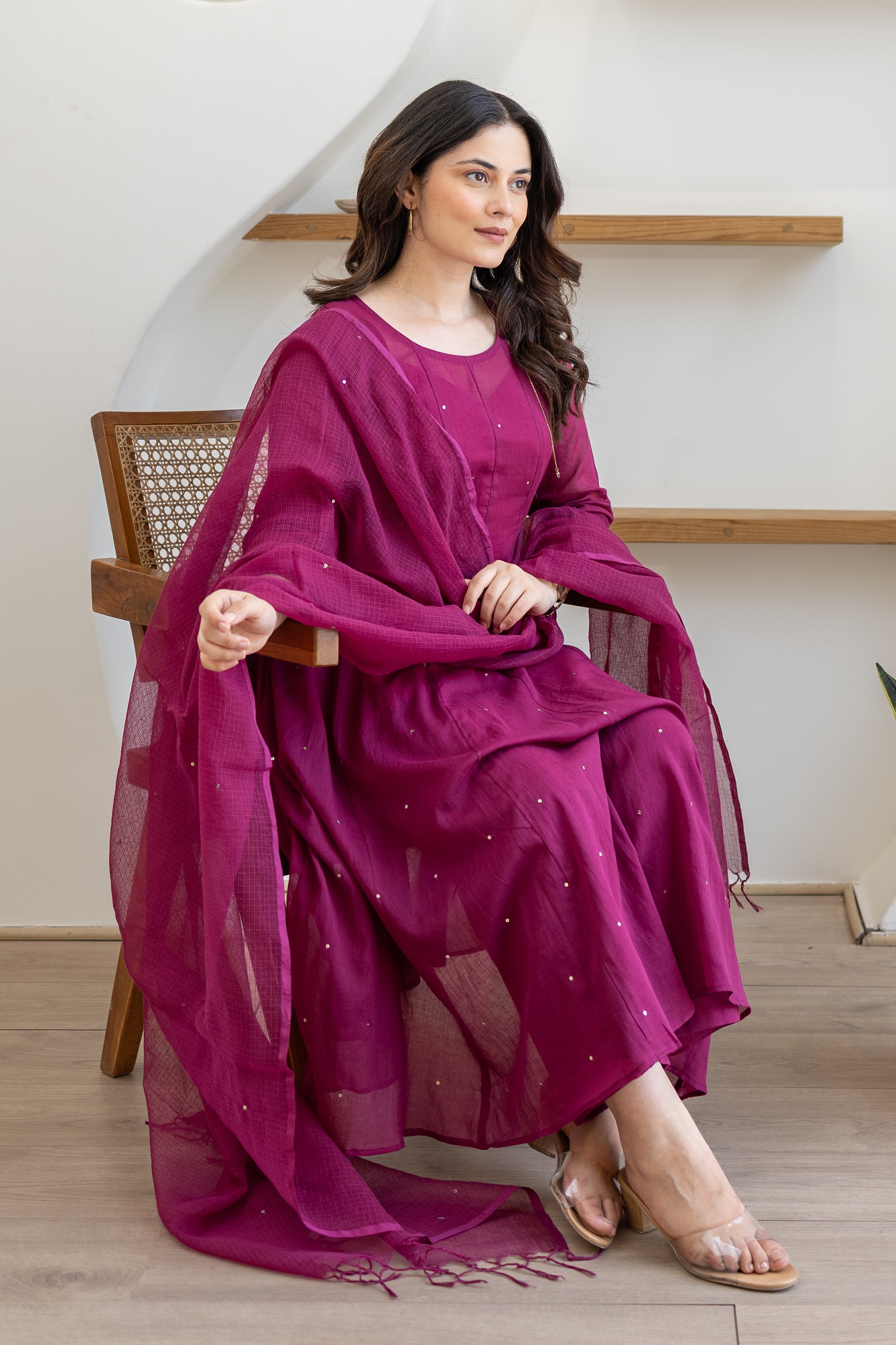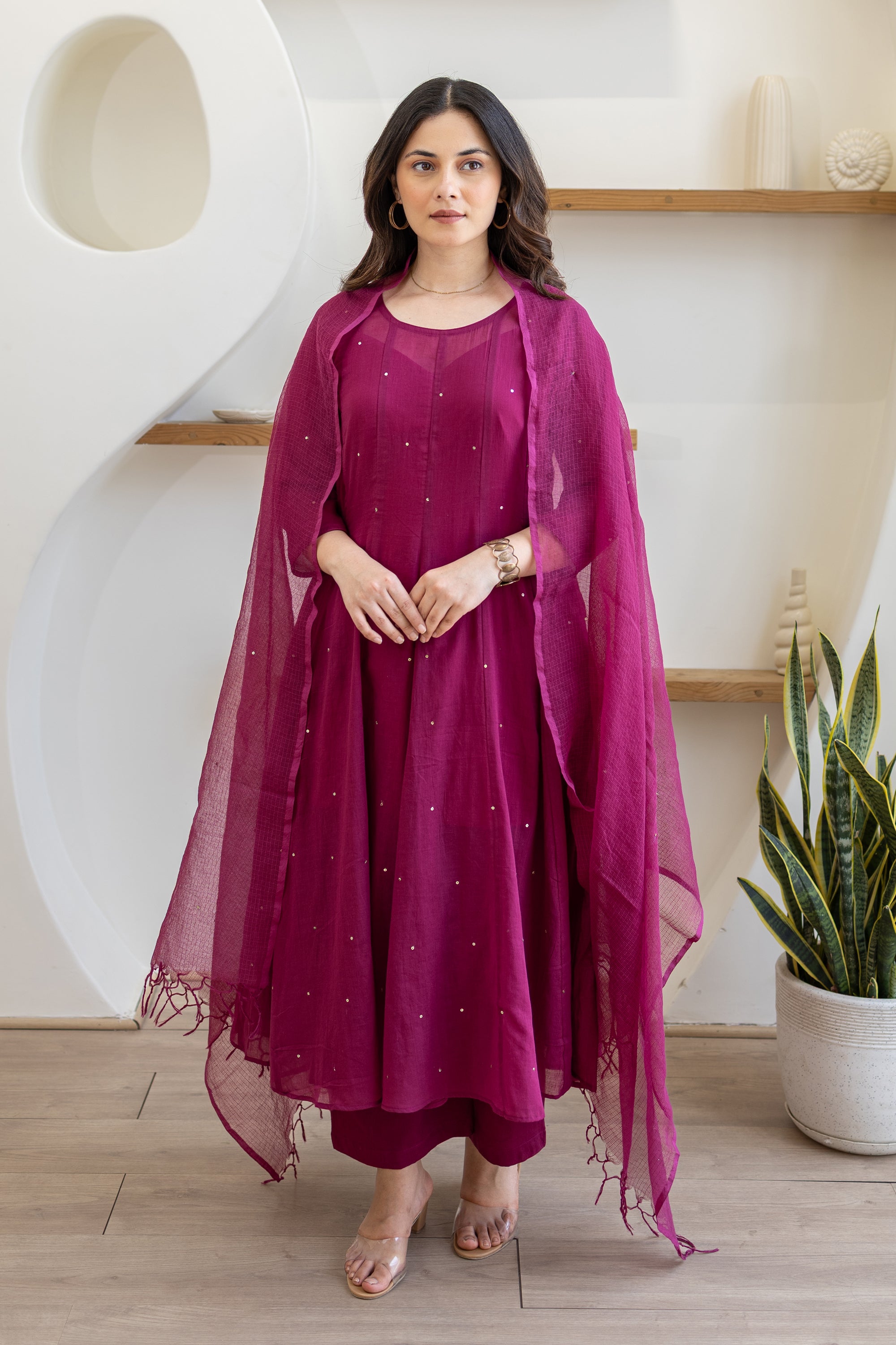 Magenta Cotton Mulmul Anarkali Suit Set With Doriya Dupatta Sale price₹ 4,999 Regular price₹ 7,409